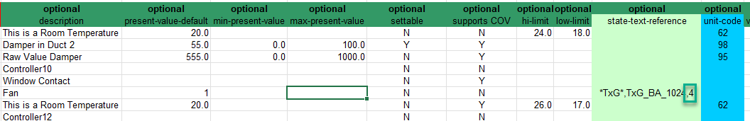 - Define the maximum stage of the fan *TxG*,TxG_BA_3147,4 for a 2-stage fan. This value is used if no value is defined in the max-present-value column.