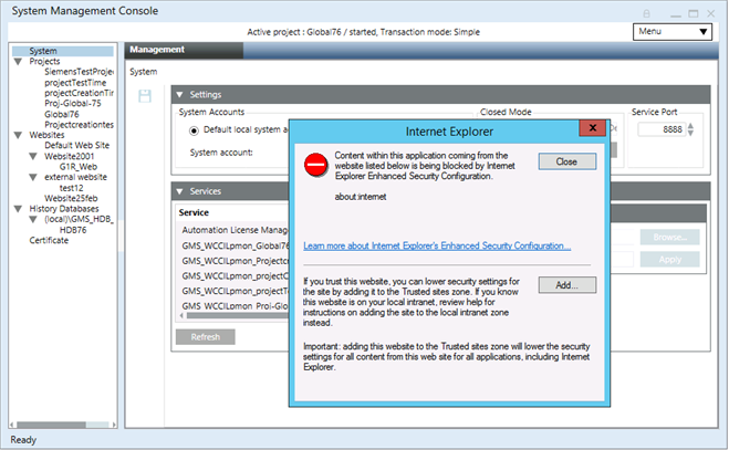 - The IE ESC property is turned off. Now, you can re-launch the SMC and work with it.