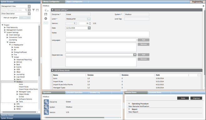 - Select Project > System Settings > Libraries > L1-Headquarter > Global > Modbus.