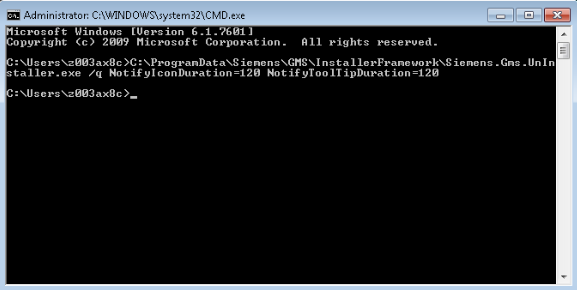 - Make sure that no other process such as, .msi installation of any other program, is in progress when you start the uninstallation. Otherwise, the silent uninstallation is aborted with a notification.