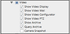 - The Scope Rights and Application Rights expanders provide the Video-related settings detailed below