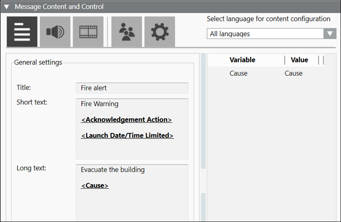 1 | Name of the message template | Displays the name of the message template. For example, Evacuate Building (Public). |