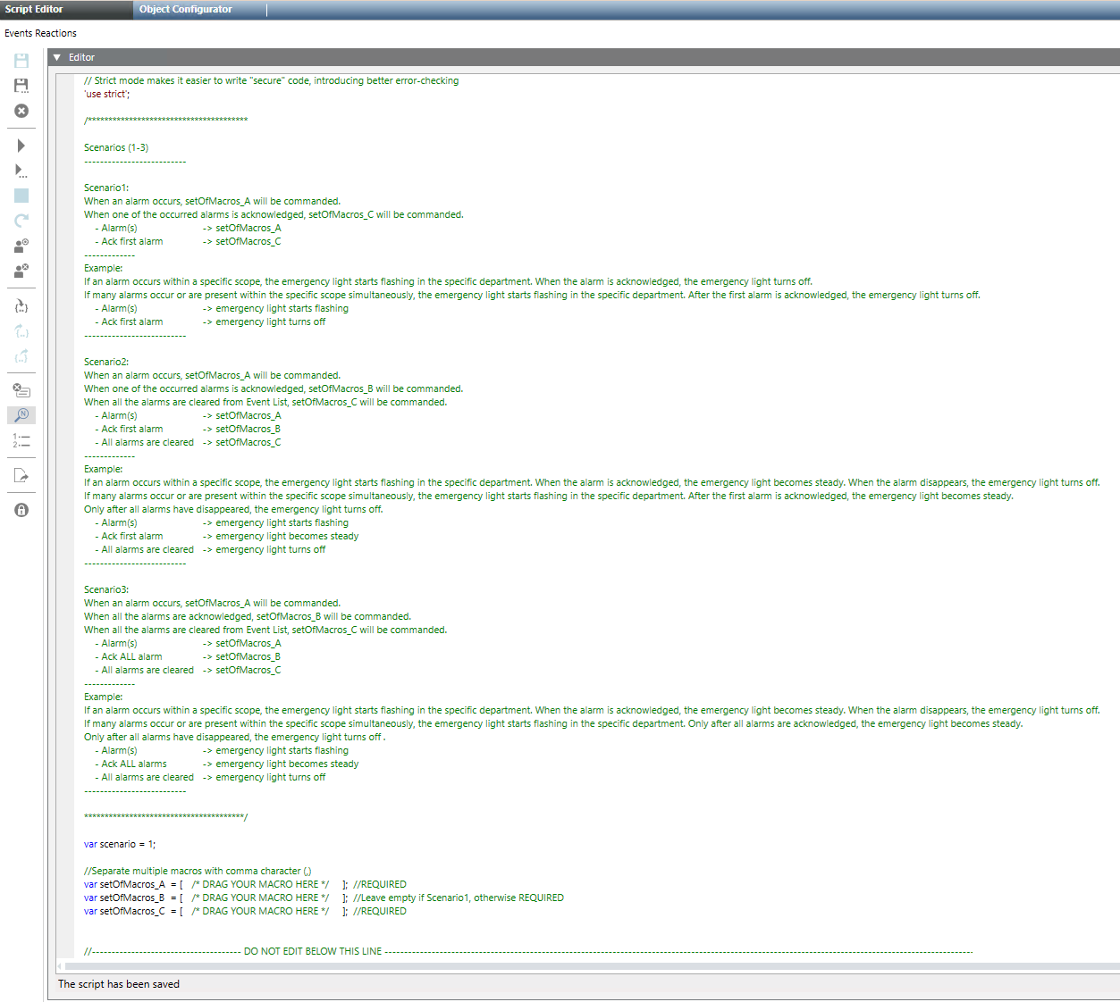Scenarios | Script Configuration | Use Case Example with macro for activating emergency light |