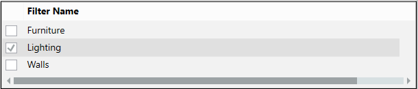 and then the desired floor. - In the Filter Name dialog window, select Lighting and Furniture.