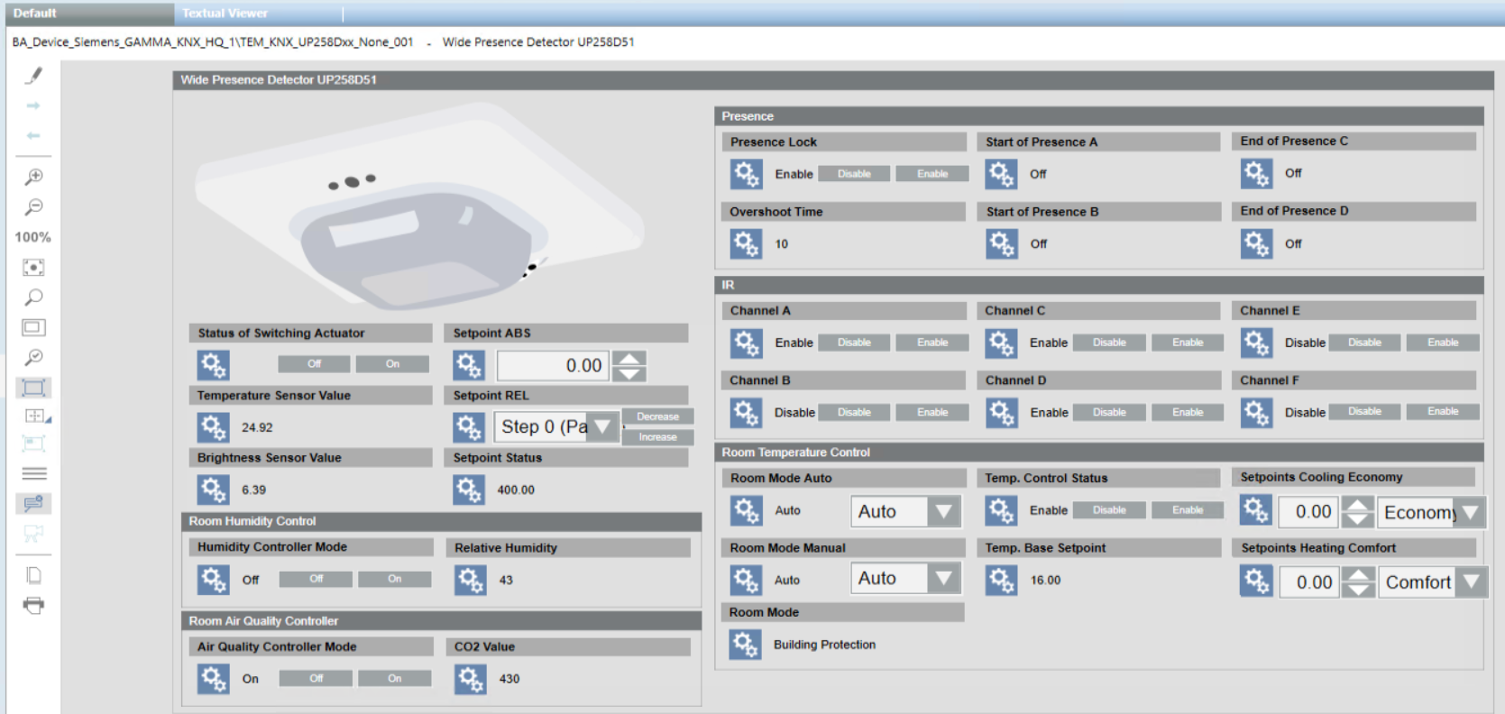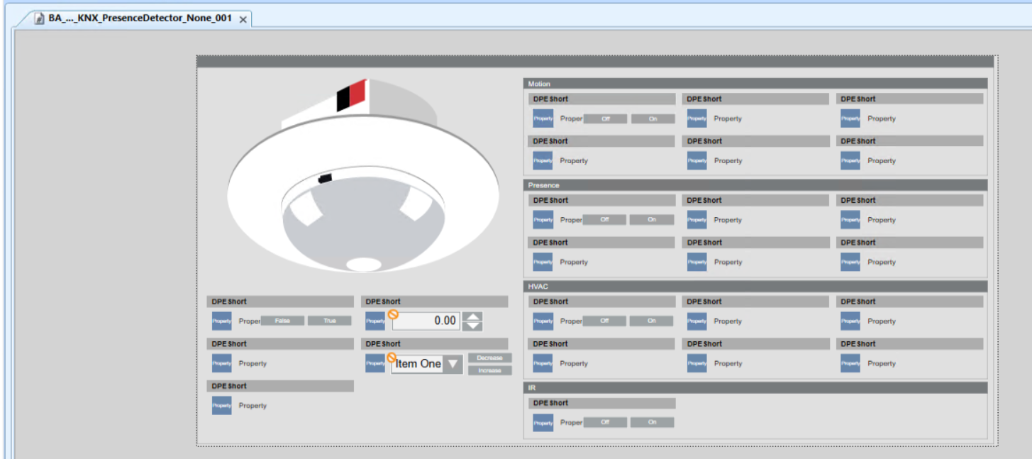In Engineering mode, this is the graphic template for the UP 258E22 and UP 258D12 presence detectors.