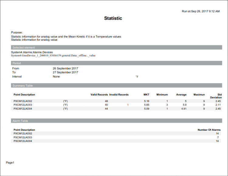This report shows key statistical summaries including Mean Kinetic Temperature (MKT).