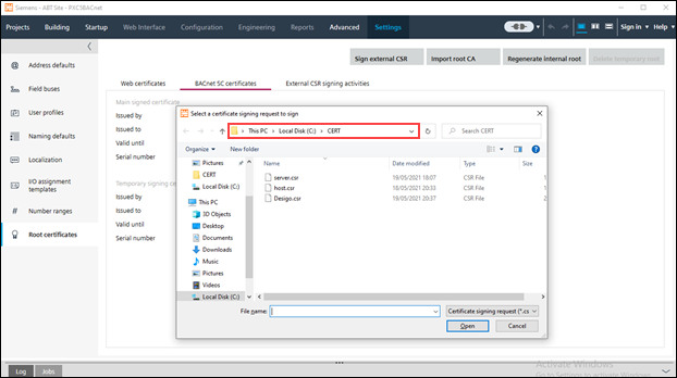 Import Certificates for BACnet/SC on the Desigo CC Management Stations