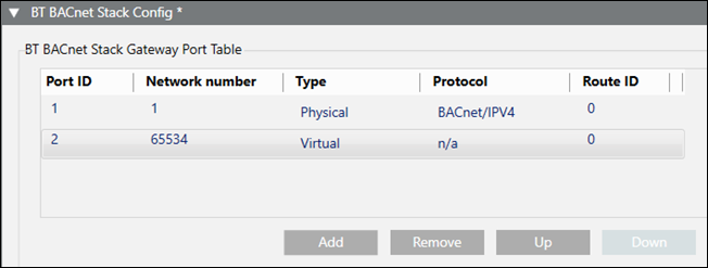 BT BACnet Stack Gateway Port Table