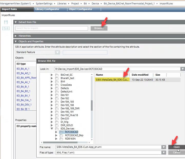- Create the meta data file, and import into the Desigo CC library to create the object model.