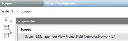 - Drag (link) the objects or subtrees (for example, Network 1) that you want to include from System Browser to the Scopes field of the Scope Rules section.