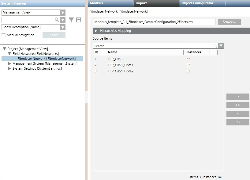 14. When the import completes, the imported configuration data structures are added to System Browser.