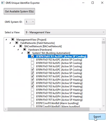 - In GMS System ID, select the ID of the system whose object identifiers you want to export.