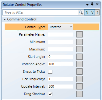 Complete the procedure below to configure the Command Control properties of the rotator command control you have drawn on your graphic. The following instructions are just one example of how a Rotator command can be configured.