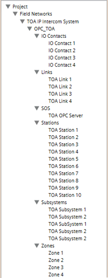 Select Project>Field Networks > [TOA IP Intercom System network].