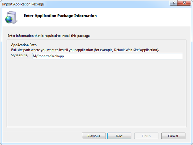 4. The Import Application Package window displays.