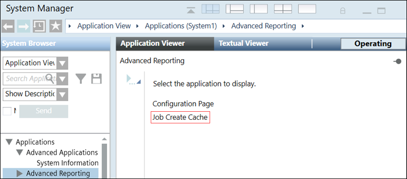 Click the Application Viewer tab, and select the Job Create Cache from the menu options.
