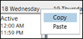 - Right-click the name of the day for which you want to copy the schedule entries and click Copy. For example, if you want to copy the schedule entries of Wednesday, then right-click the name of the day