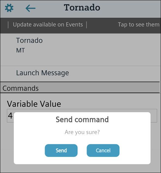 - The selected incident is initiated. All commands in Notification are visible in Mobile App.