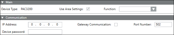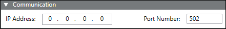 - IP Address: Specify the IP address of the device for communication. When communicating via a gateway, use the IP address of the higher level. When communicating via Modbus TCP, use the IP address of the device.