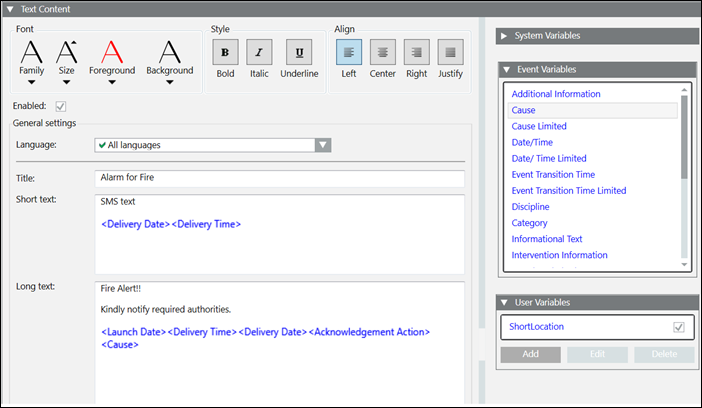 NOTE: Signatures are displayed only if the Enabled check box is selected in a message template. - Enter the required signature short text and signature long text.