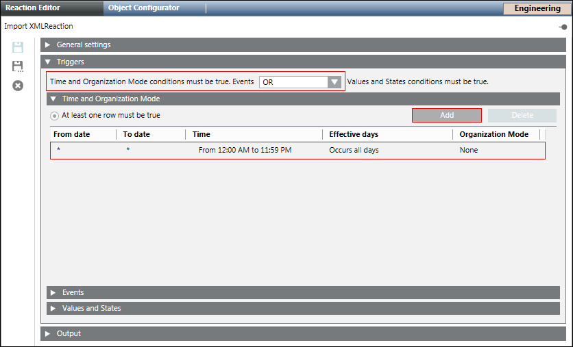 - Click Save As and enter the name and description for the Import XML reaction.