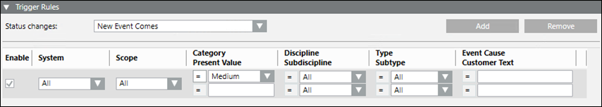- Enable: Indicates if the rule is enabled when the check box is selected