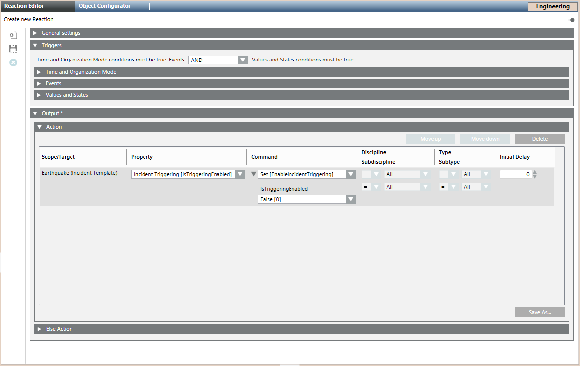- Click Save As and enter a name and description for the incident triggering reaction.