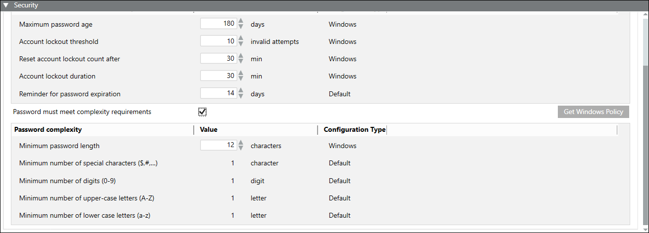 - Revert back to the existing password and account lockout policy values. You can do this by using the Get Windows Policy button.