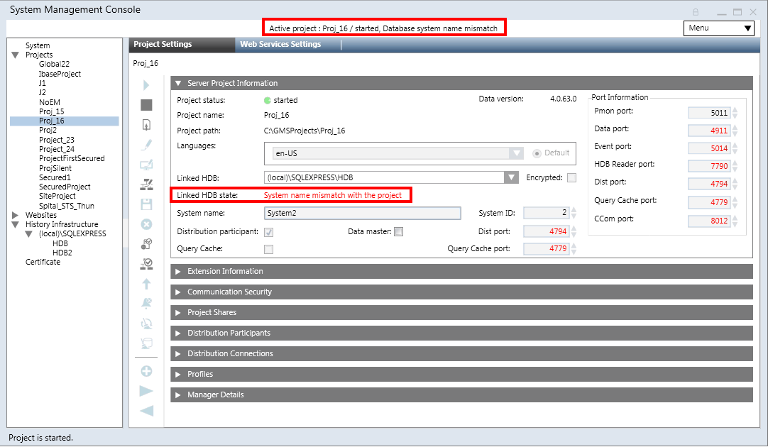 System name mismatch (in red) | The system name in the HDB is different than system name of the project to which the HDB is linked. |