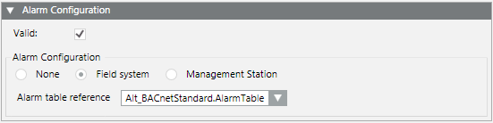 - In the Alarm Configuration expander, select the Valid check box.