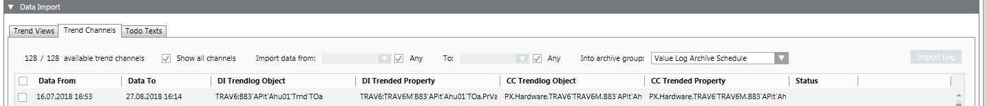 NOTE: Use the tooltip at columns DI Trendlog Object, DI Trended Property, CC Trendlog Object and CC Trended Property to learn more about trend data. - Perform an import.