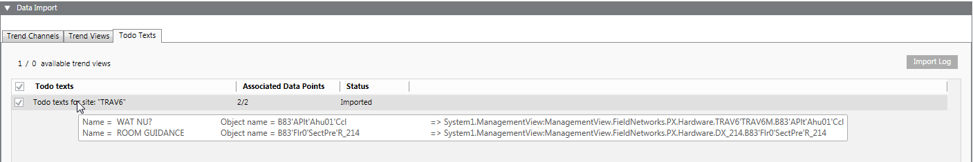 The file displayed in the log is saved as DIMigrationTodoLog.csv in folder [Installation Drive]:\[Installation Folder]\[Project Name]\log and can be opened in Excel. The separators for the CSV file are based on the set Desigo CC network language.