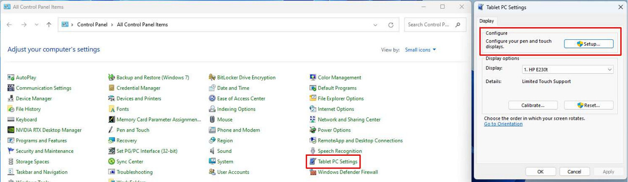 - In the Tablet PC Settings section, click Setup.